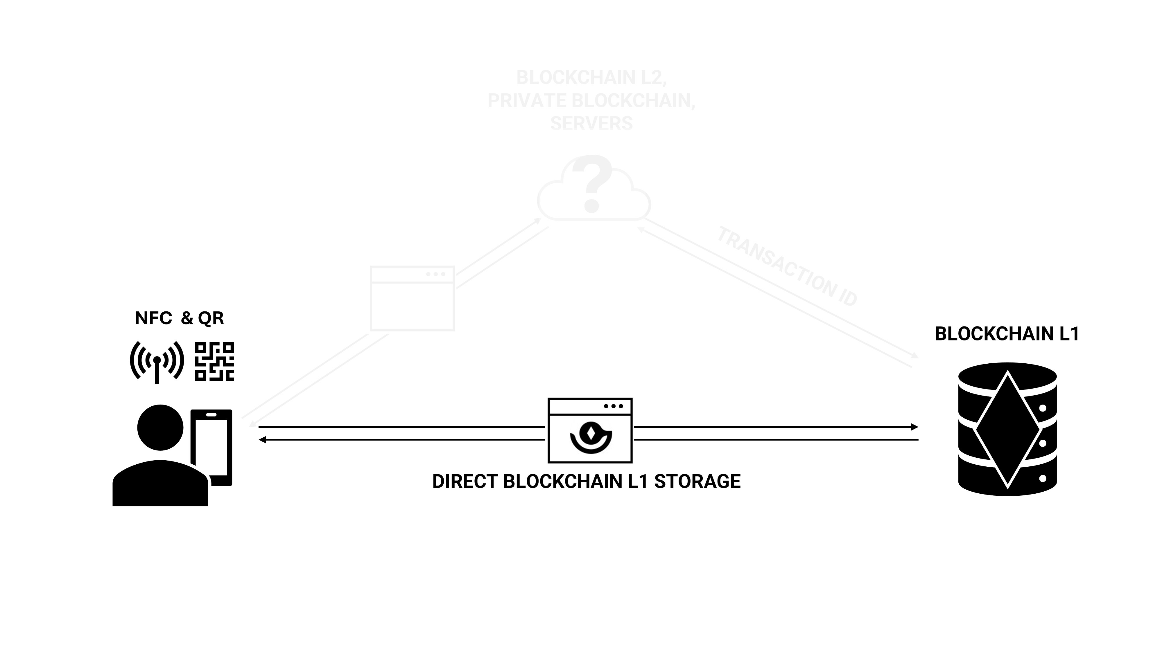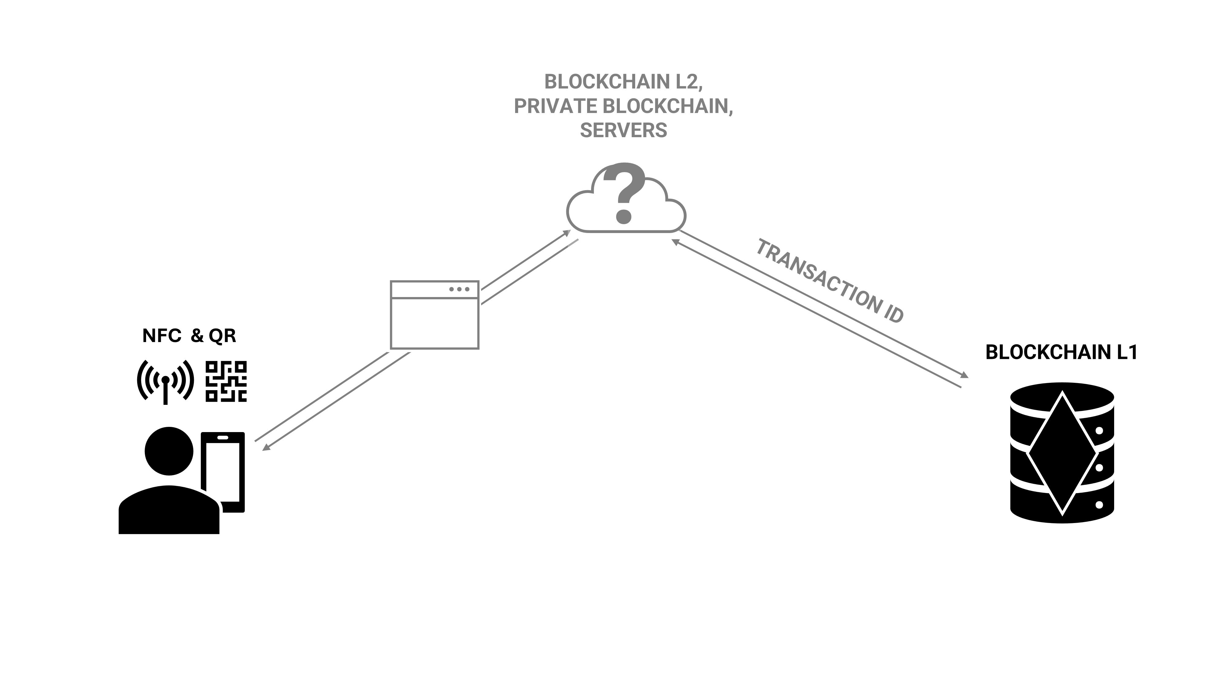 Blockchain data can also be accessed by scanning an EtherURL QR code or NFC tag embedded in a product, document, or component. The scan opens a web page that reads the data directly from the blockchain, ensuring authenticity and real-time verification.